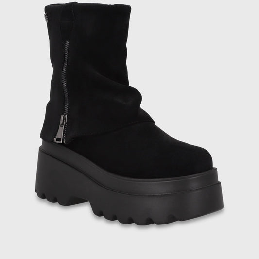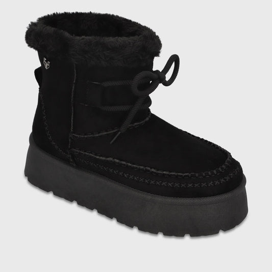 Zapatilla Plataforma Cuero Negra Mujer 9724A23
