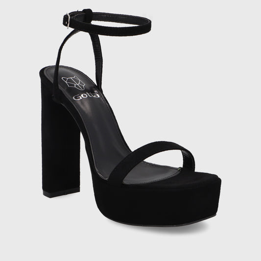 Sandalia Taco Satin Negro Mujer 15837