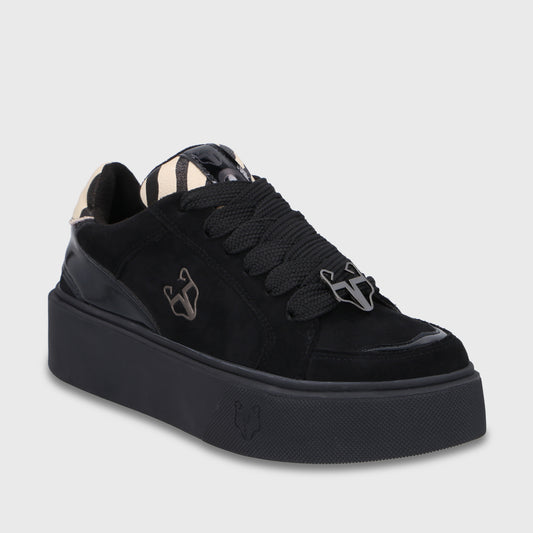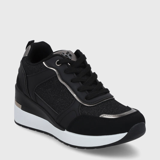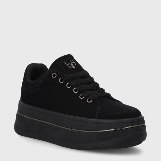 Zapatilla Plataforma Cuero Negra Mujer 9724A