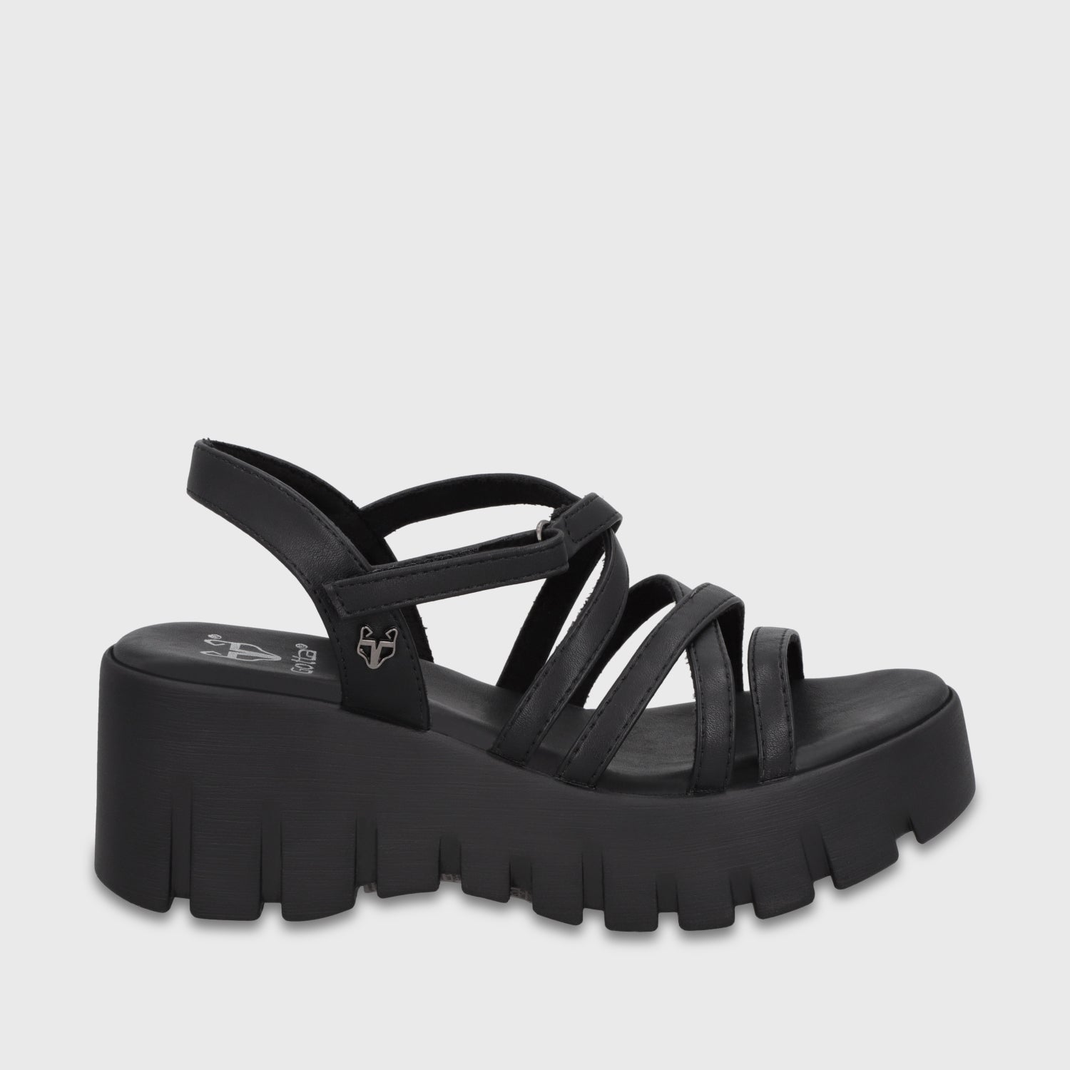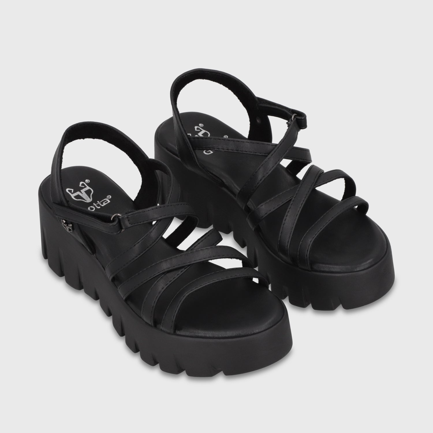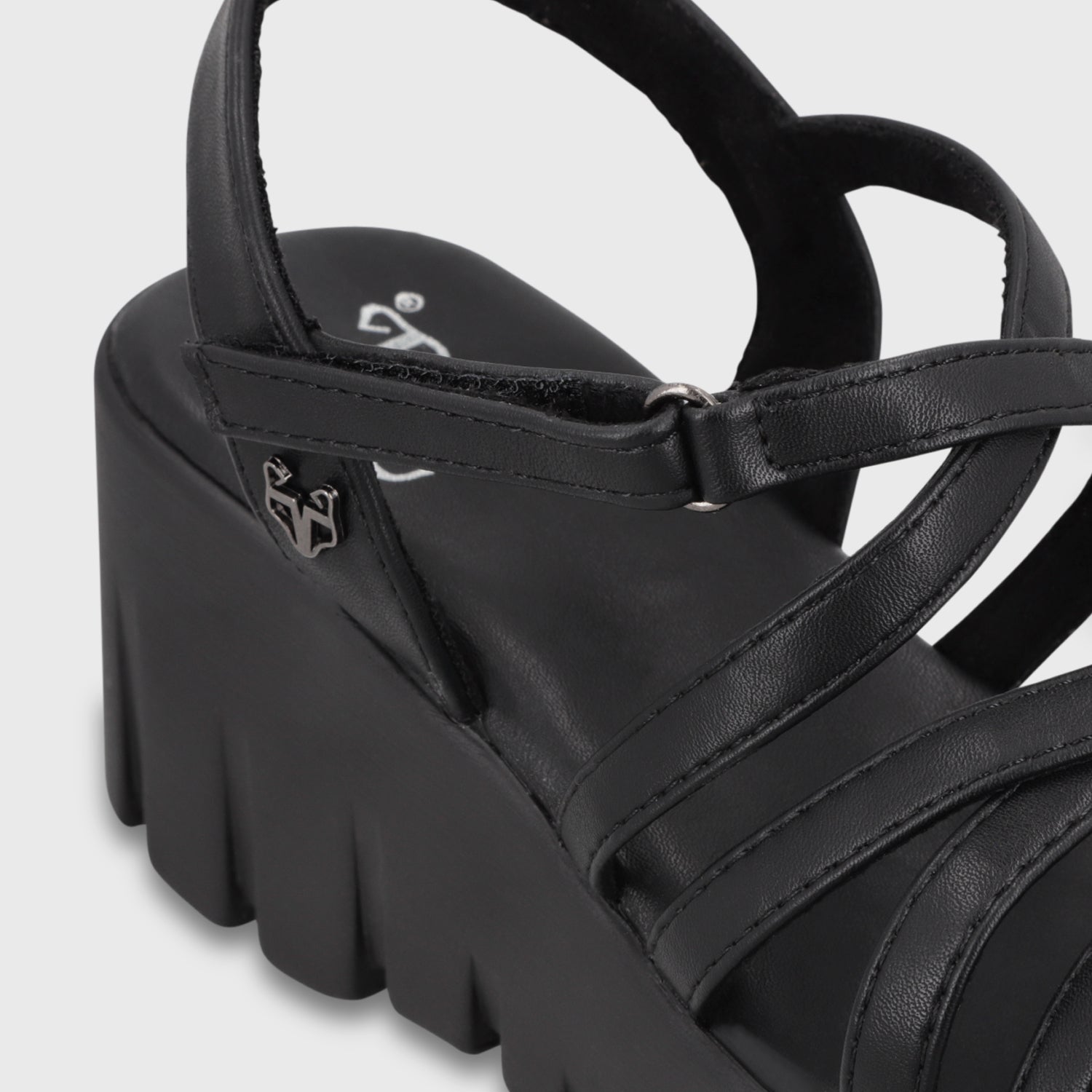 Sandalia negra de plataforma en acabado tipo cuero con tiras anchas que brindan firmeza y un look elegante-urbano. Cómoda y poderosa, es ideal para estilizar tu figura sin perder confort. Combínalas con jeans rectos y una blusa oversize para un aire effortless chic o con vestidos midi para un look más sofisticado. ¡Un par que no puede faltar en tu clóset para elevar cualquier outfit!
