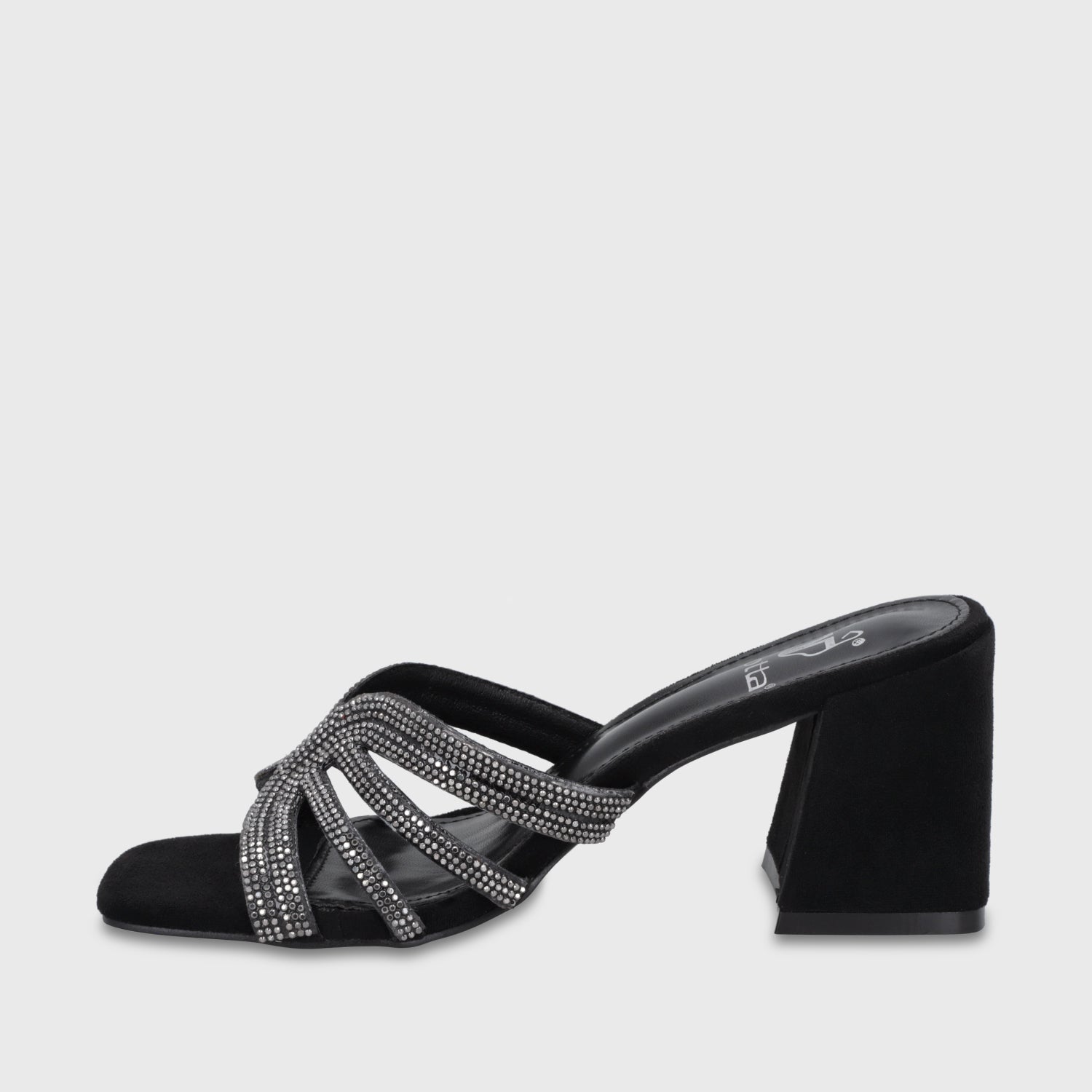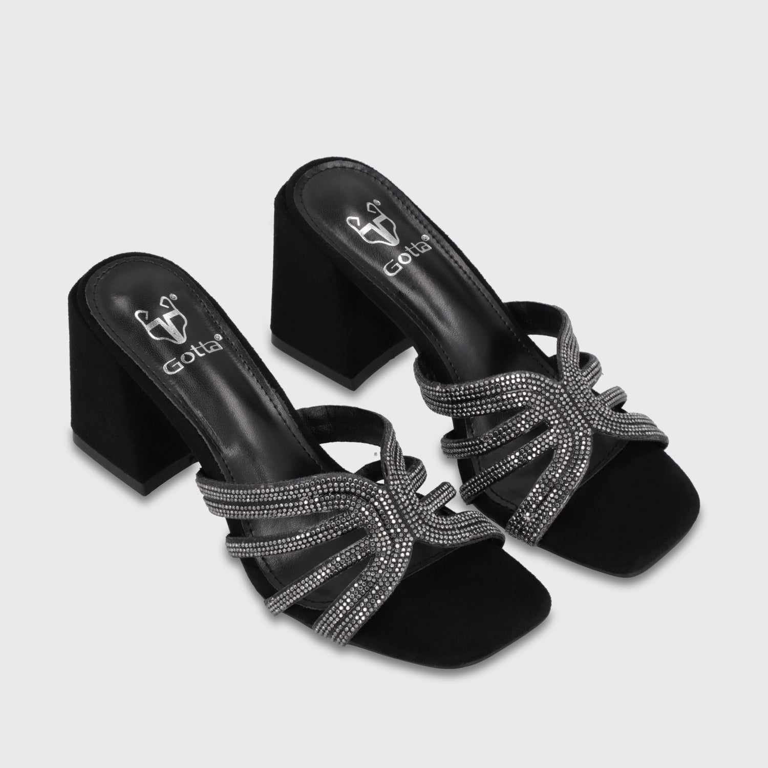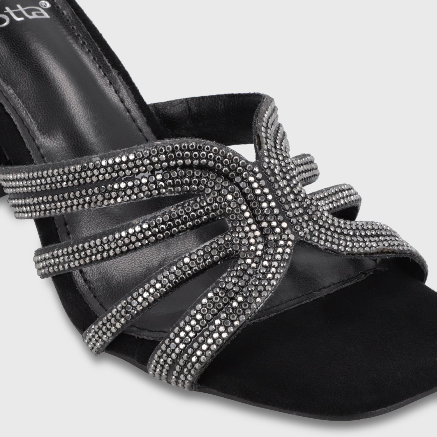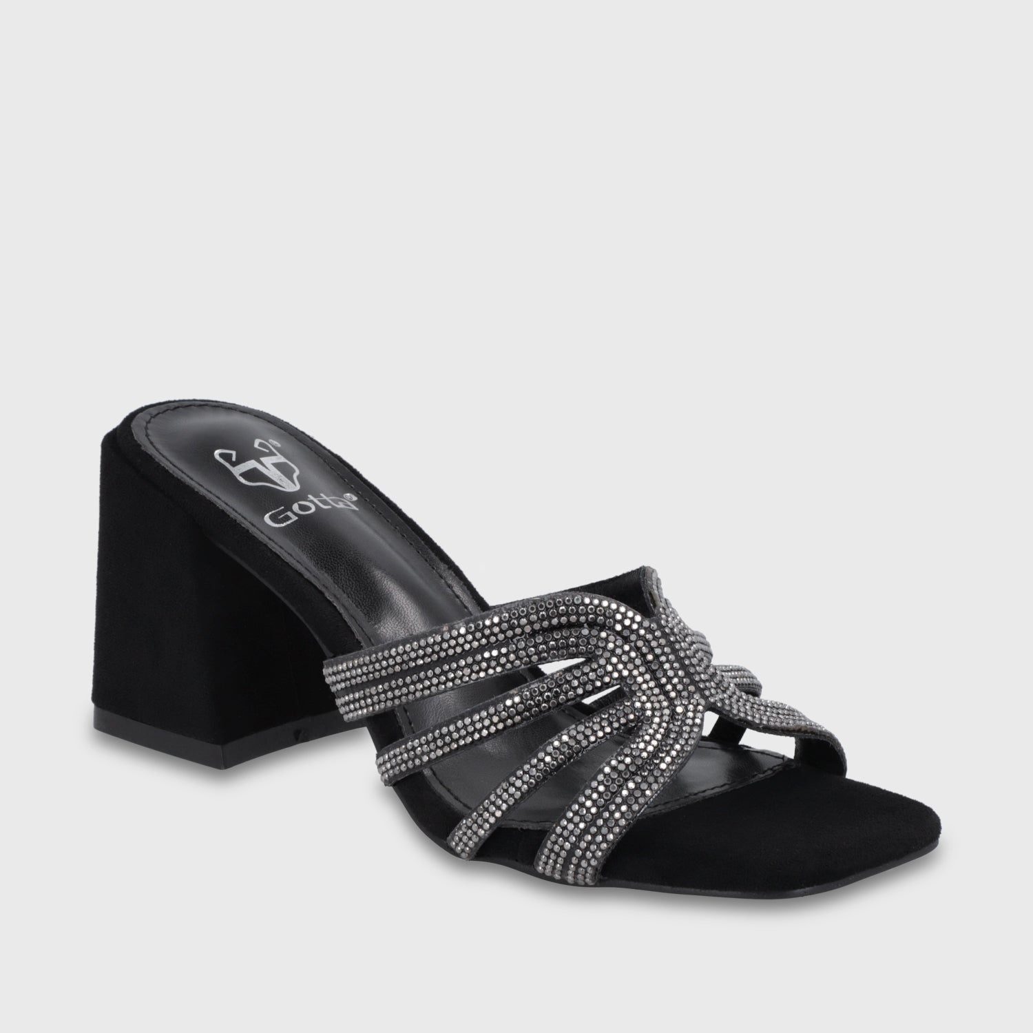El negro siempre será un clásico, y en esta sandalia de gamuza con cristales encuentra su mejor versión para darle un aire sofisticado a tus looks de fiesta o a un outfit urbano con mucho estilo. Su diseño con taco y punta cuadrada estiliza la silueta, mientras que la textura en gamuza aporta elegancia atemporal. Combínalas con un vestido lencero, una falda satinada o un pantalón sastre para un giro moderno y fashionista.
