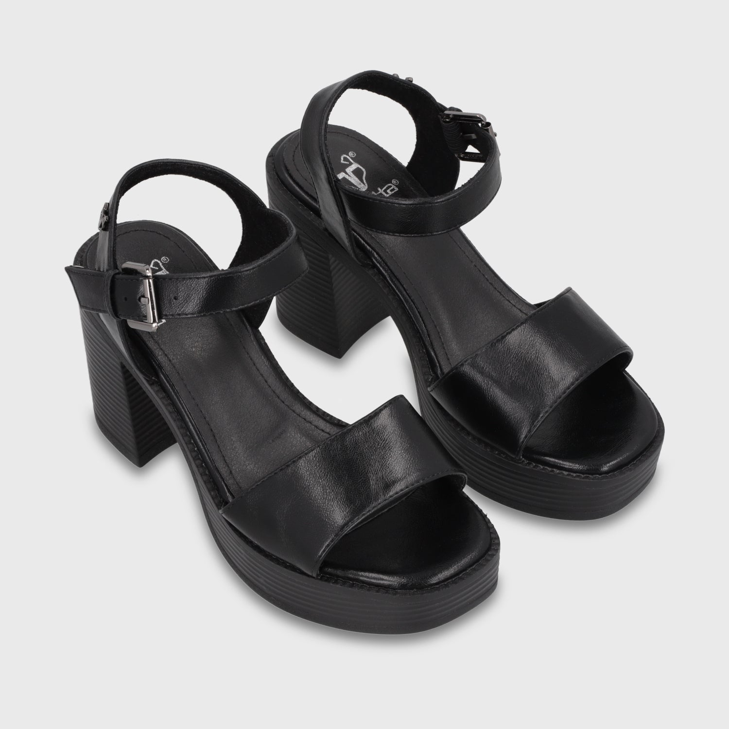 El acabado en cuero negro realza la sofisticación de este diseño de tiras, ideal para elevar un look urbano con un toque elegante. Su taco cuadrado ofrece comodidad sin perder estilo, mientras que la punta redonda suaviza la silueta para hacerlo más versátil. Perfectas para combinar con jeans rectos y una blusa satinada para un outfit casual chic, o con un vestido midi para un aire más femenino